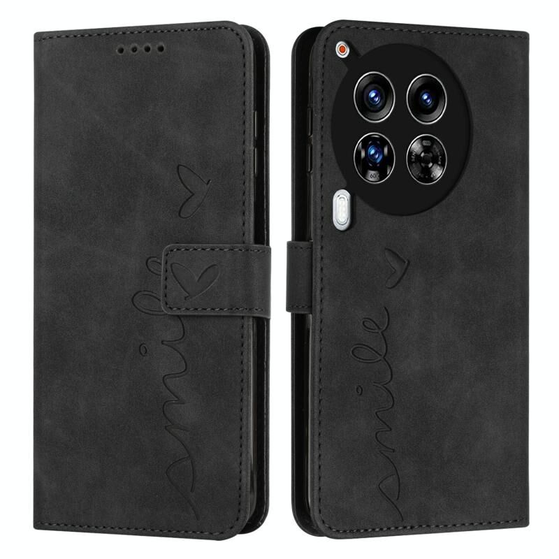 Για Tecno Camon 30 4G / 5G Skin Feel Heart ανάγλυφη δερμάτινη θήκη τηλεφώνου με μακρύ κορδόνι (μαύρο)