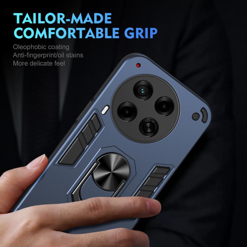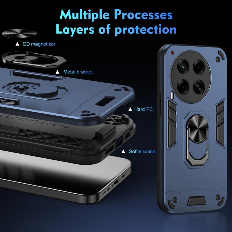 For Tecno Camon 30 4G Shockproof Metal Ring Holder Phone Case(Blue)