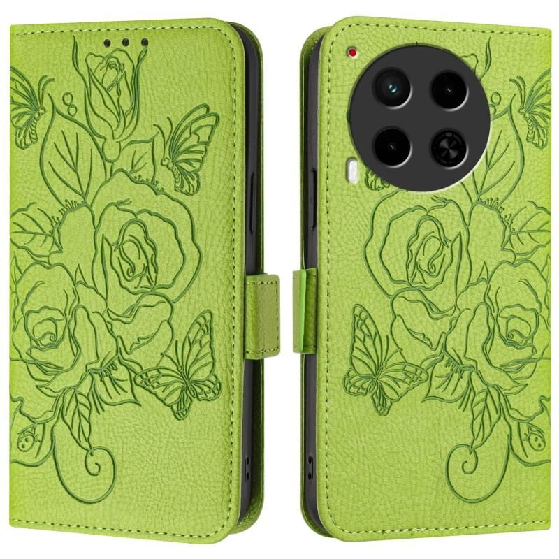 For Tecno Camon 30 5G / 4G Embossed Rose RFID Anti-theft Leather Phone Case(Green)