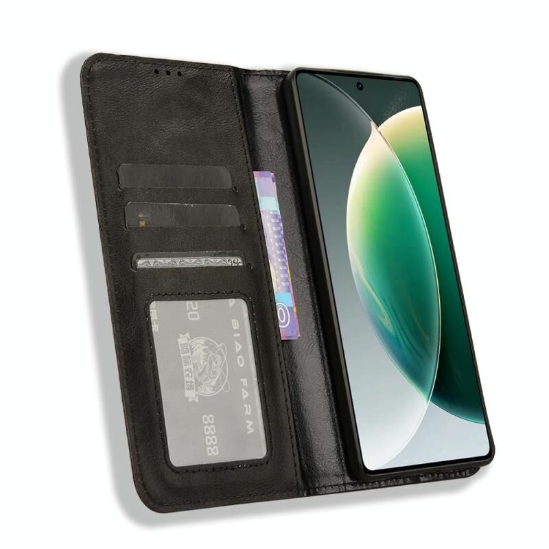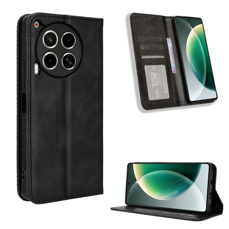 Για Tecno Camon 30 5G / 4G Μαγνητική πόρπη Ρετρό υφή δερμάτινη θήκη τηλεφώνου (Μαύρο)