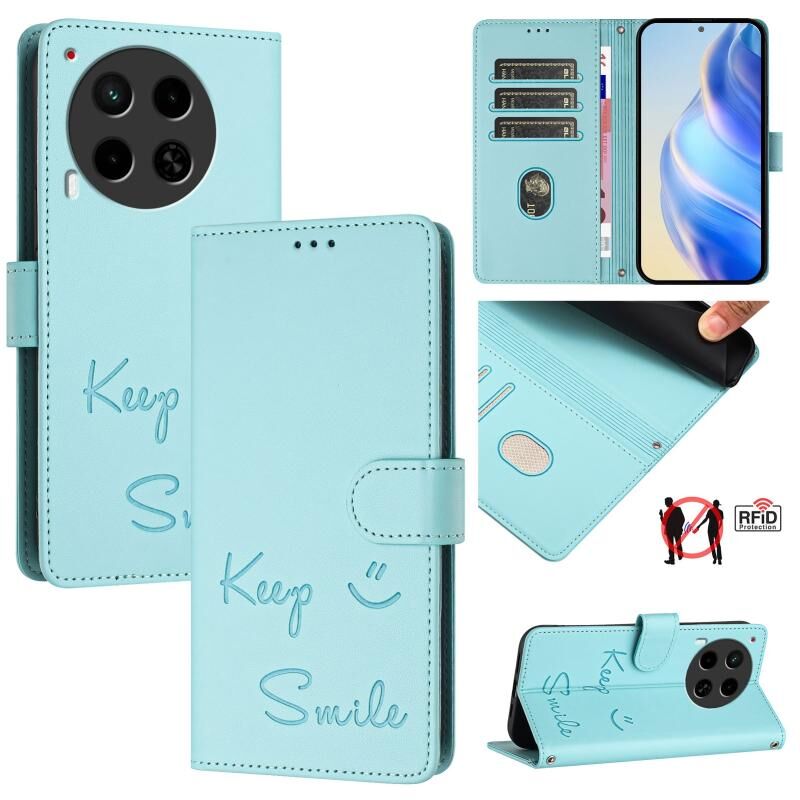 For Tecno Camon 30 5G / 4G Smile Embossing RFID Leather Phone Case(Mint Green)