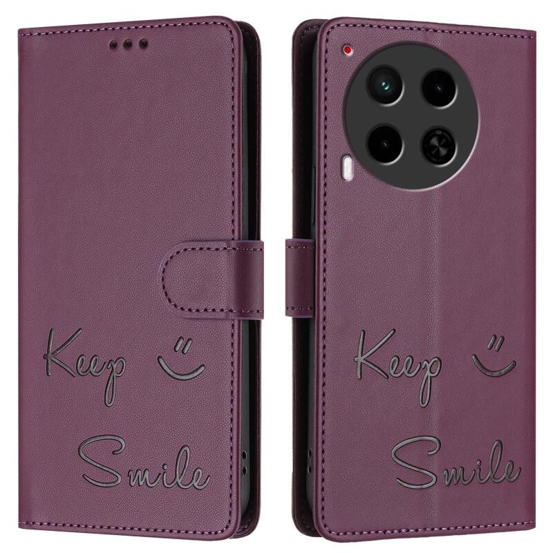 For Tecno Camon 30 5G / 4G Smile Embossing RFID Leather Phone Case(Violet)
