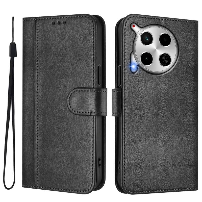 For Tecno Camon 30 5G Line Splicing Buckle Retro Leather Phone Case(Black)