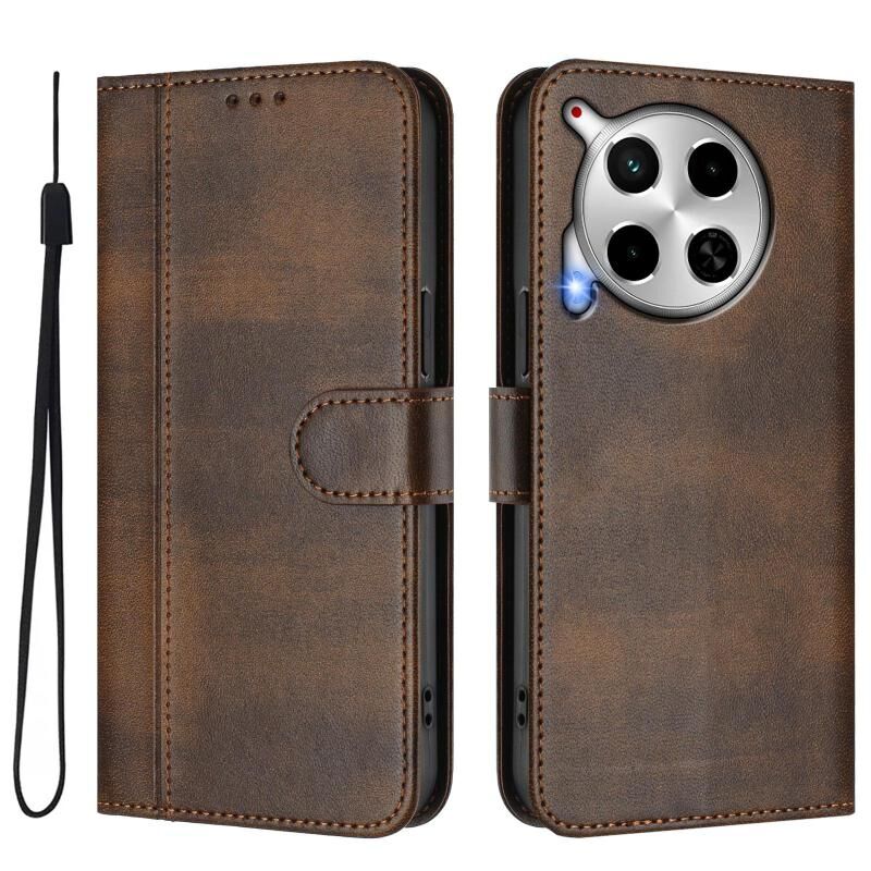 For Tecno Camon 30 5G Line Splicing Buckle Retro Leather Phone Case(Brown)