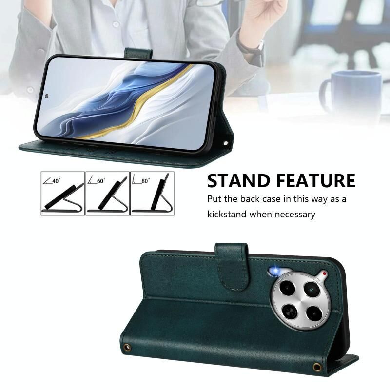 For Tecno Camon 30 5G Line Splicing Buckle Retro Leather Phone Case(Dark Green)