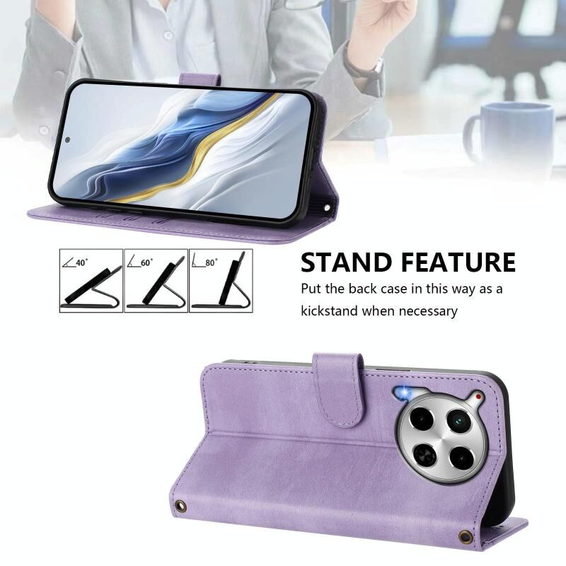 For Tecno Camon 30 5G Line Splicing Buckle Retro Leather Phone Case(Purple)