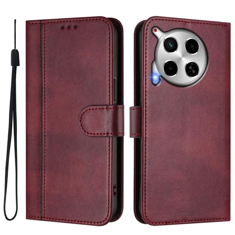 For Tecno Camon 30 5G Line Splicing Buckle Retro Leather Phone Case(Wine Red)