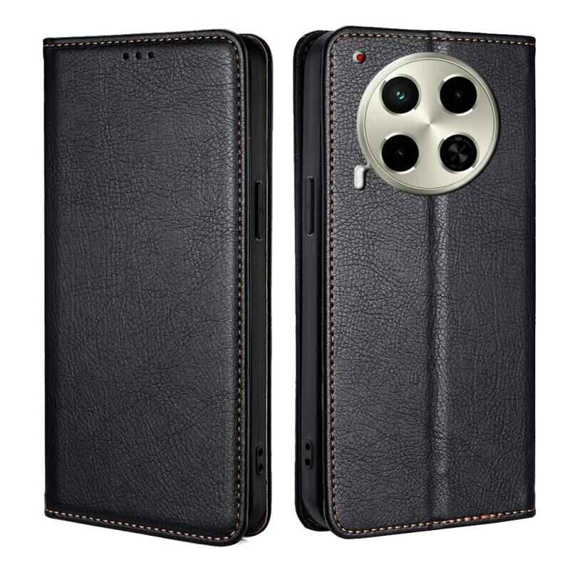 For Tecno Camon 30 Gloss Oil Solid Color Magnetic Leather Phone Case(Black)