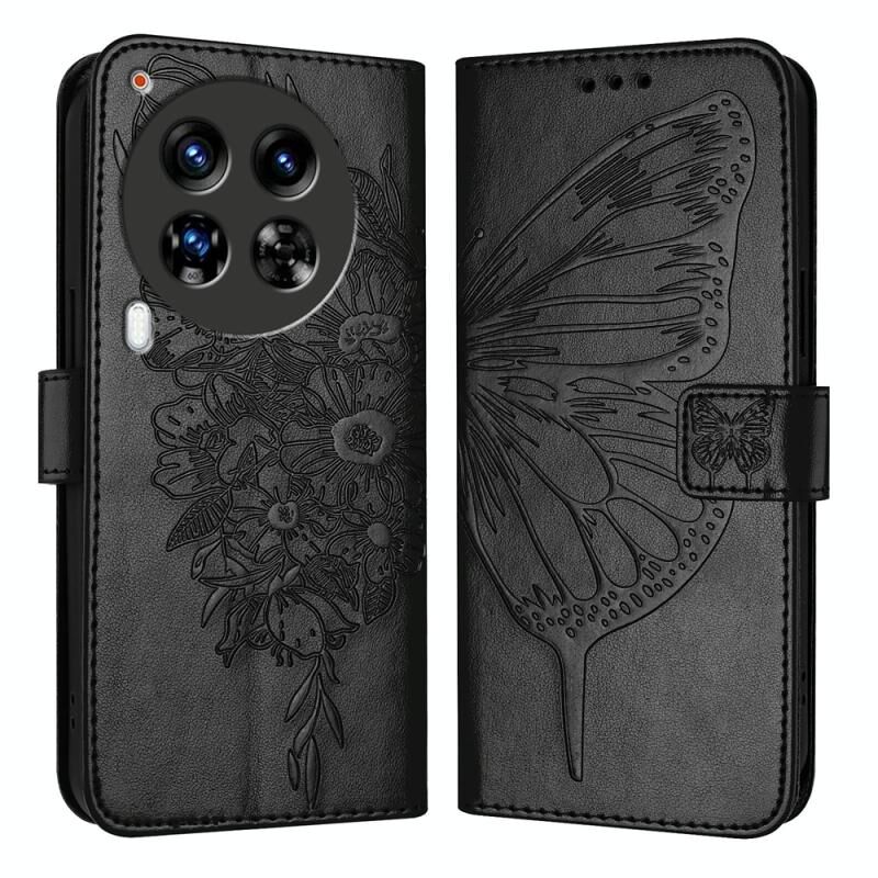 Θήκη τηλεφώνου από ανάγλυφο δέρμα πεταλούδας για Tecno Camon 30 Premier 5G (Μαύρο)