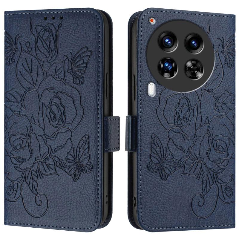 For Tecno Camon 30 Premier 5G Embossed Rose RFID Anti-theft Leather Phone Case(Dark Blue)