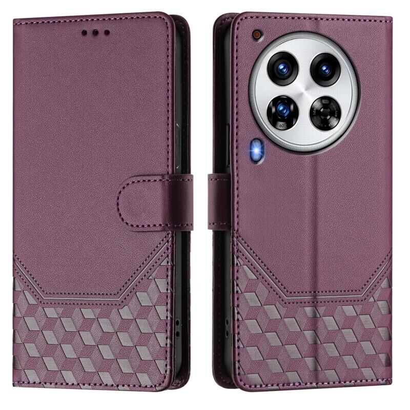 Για Tecno Camon 30 Premier 5G κηρήθρα ανάγλυφη RFID δερμάτινη θήκη τηλεφώνου (Violet)
