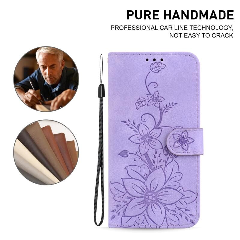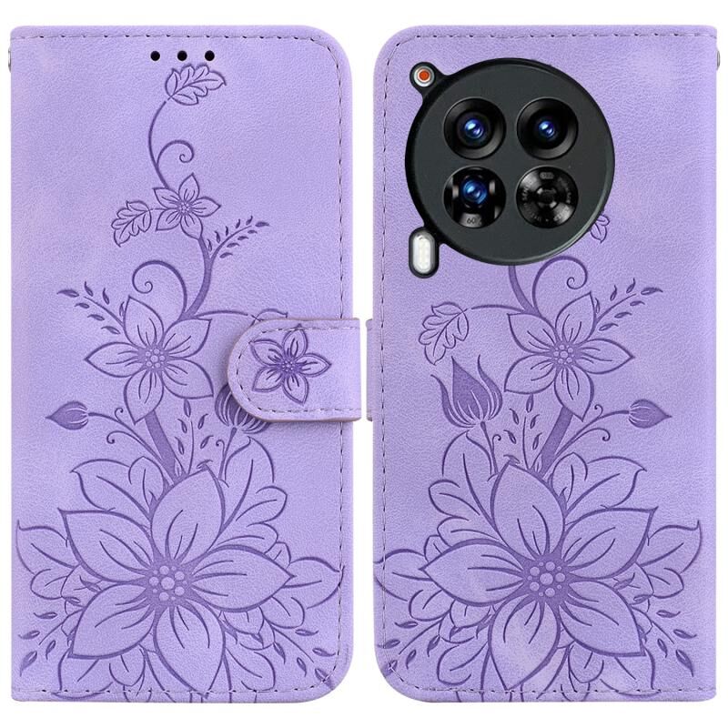 Θήκη τηλεφώνου Tecno Camon 30 Premier 5G από δέρμα με ανάγλυφο λουλουδιού Lily (Μωβ)