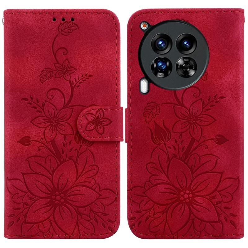 Θήκη τηλεφώνου Tecno Camon 30 Premier 5G από δέρμα με ανάγλυφο λουλουδιού Lily (Μωβ)