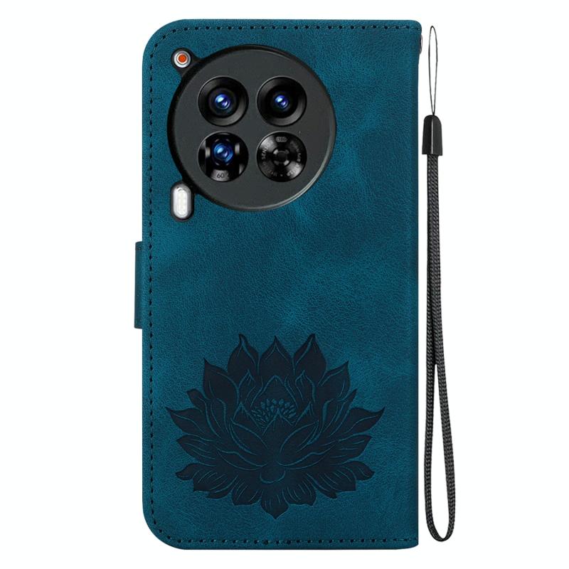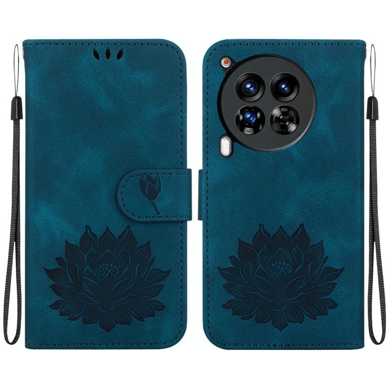 For Tecno Camon 30 Premier 5G Lotus Embossed Leather Phone Case(Dark Blue)