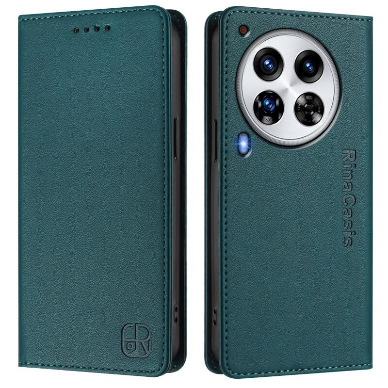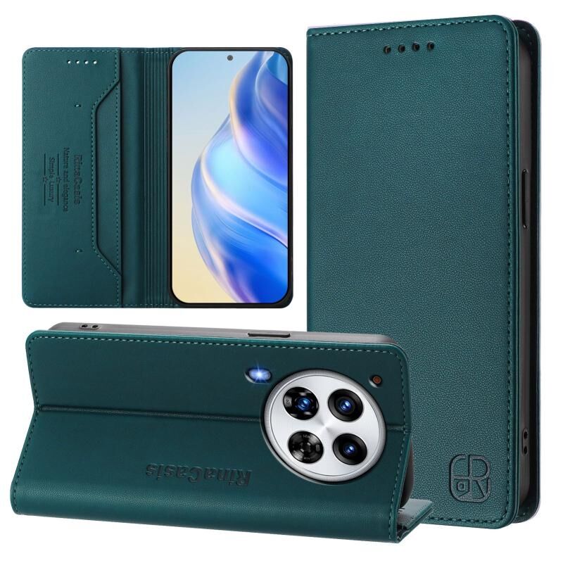 For Tecno Camon 30 Premier 5G RC01 Dual-Folded Magnetic Suction RFID Leather Phone Case(Dark Green)