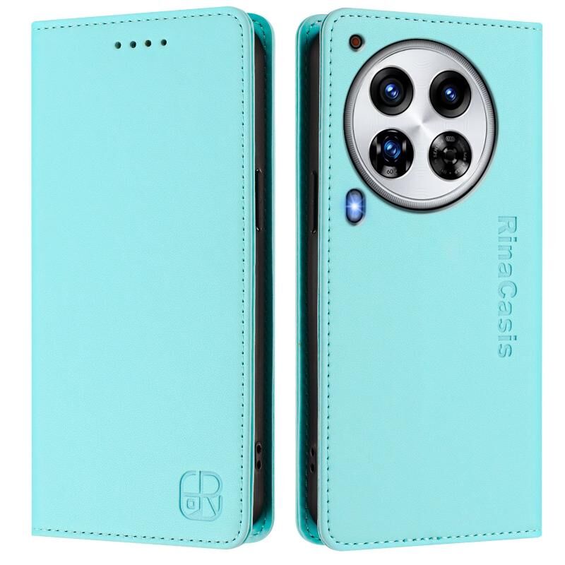 For Tecno Camon 30 Premier 5G RC01 Dual-Folded Magnetic Suction RFID Leather Phone Case(Mint Green)