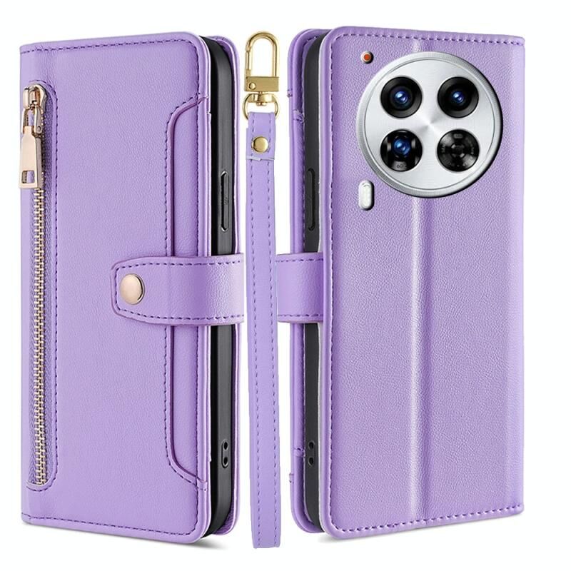 Για Tecno Camon 30 Premier 5G Sheep Texture Cross-body φερμουάρ πορτοφόλι δερμάτινη θήκη τηλεφώνου (μωβ)