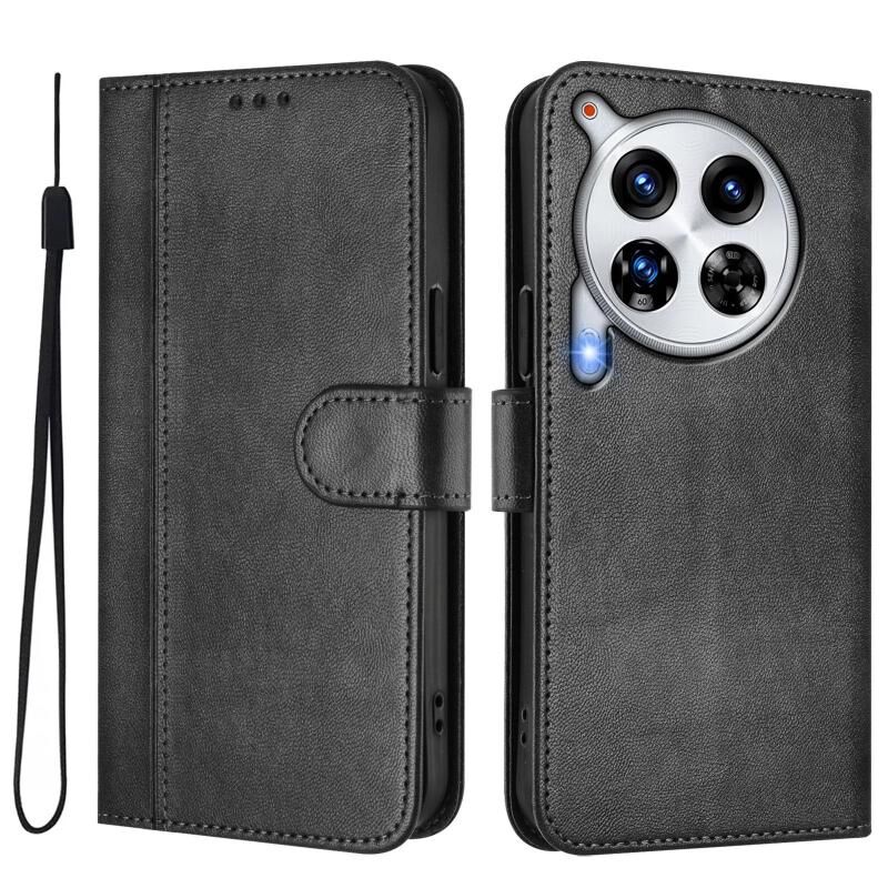 For Tecno Camon 30 Premier Line Splicing Buckle Retro Leather Phone Case(Black)
