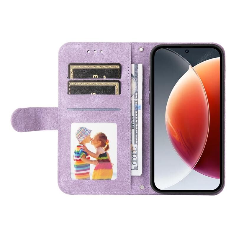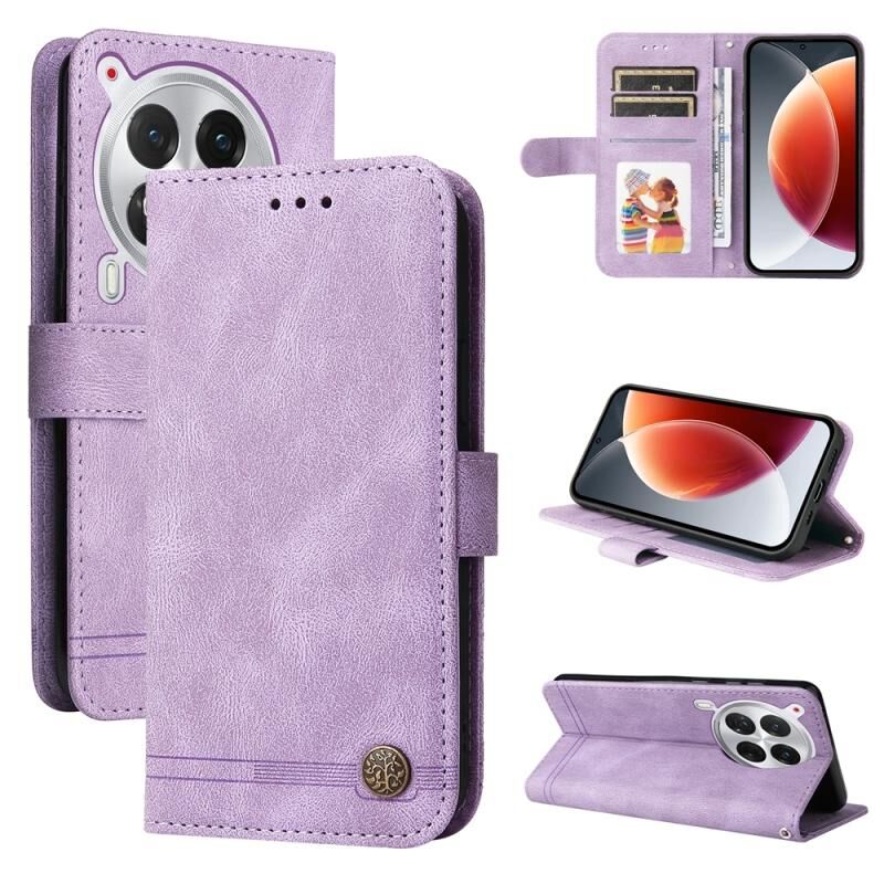 Για Tecno Camon 30 Premier Skin Feel Life Tree Μεταλλικό κουμπί Δερμάτινη θήκη τηλεφώνου (μωβ)