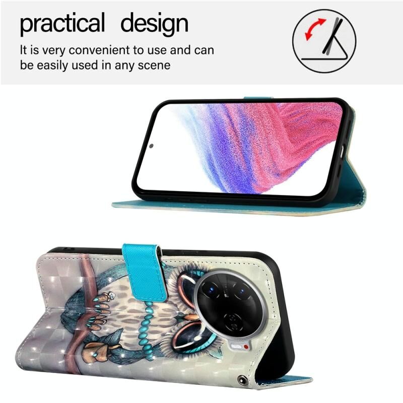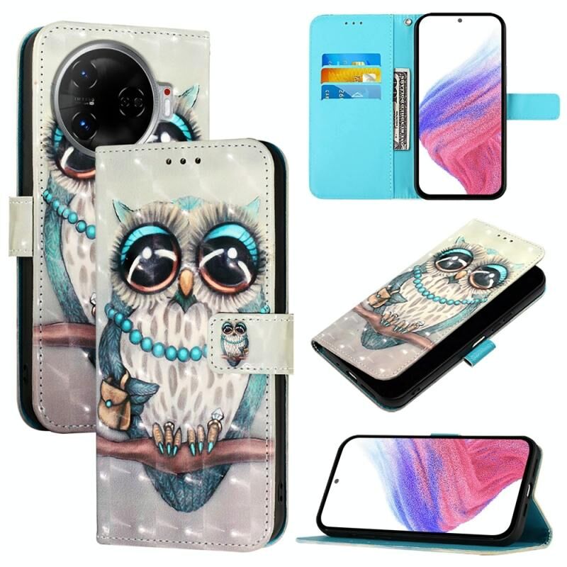 Θήκη τηλεφώνου από δέρμα με οριζόντια αναδίπλωση και τρισδιάστατη ζωγραφική για Tecno Camon 30 Pro (Γκρι κουκουβάγια)