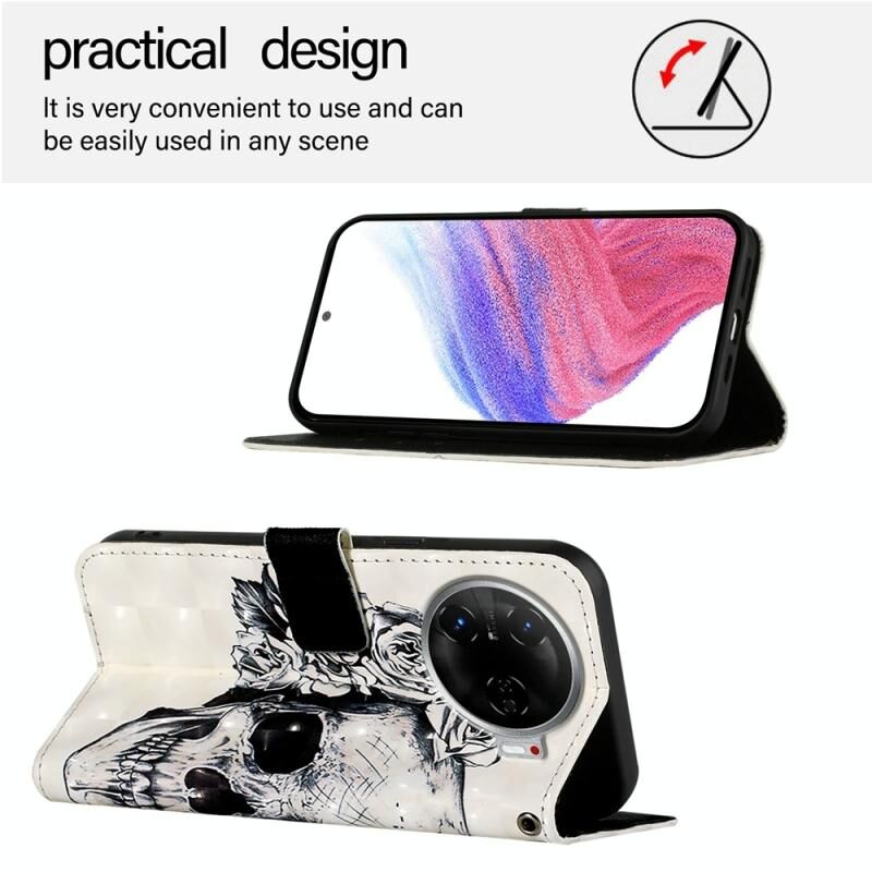 Θήκη τηλεφώνου από δέρμα με οριζόντια αναδίπλωση και τρισδιάστατη βαφή για Tecno Camon 30 Pro (Κρανίο)
