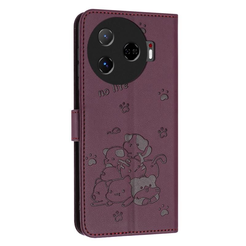 Θήκη δερμάτινη για Tecno Camon 30 Pro 5G με ανάγλυφο σχέδιο γατάκι και κορδόνι (Μωβ)