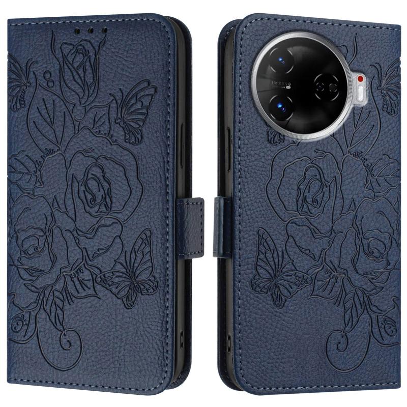 For Tecno Camon 30 Pro 5G Embossed Rose RFID Anti-theft Leather Phone Case(Dark Blue)