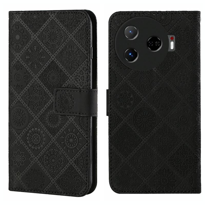 Θήκη τηλεφώνου από δέρμα με ανάγλυφο σχέδιο εθνοτικού στυλ για Tecno Camon 30 Pro 5G (Καφέ)