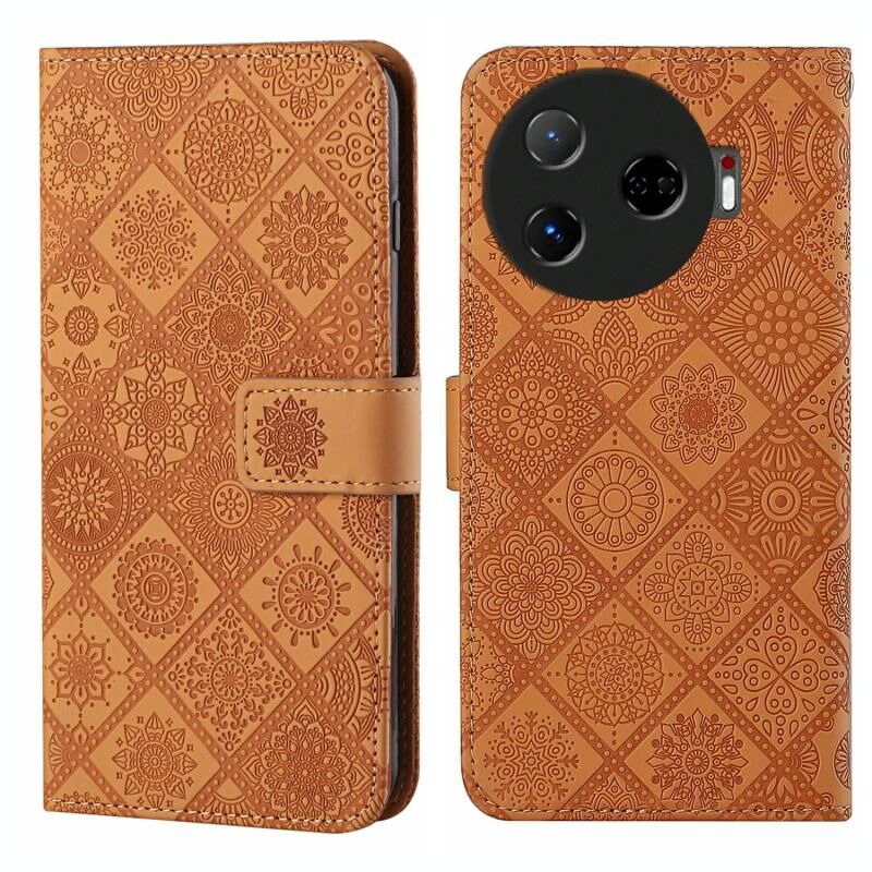 Θήκη τηλεφώνου από δέρμα με ανάγλυφο σχέδιο εθνοτικού στυλ για Tecno Camon 30 Pro 5G (Καφέ)