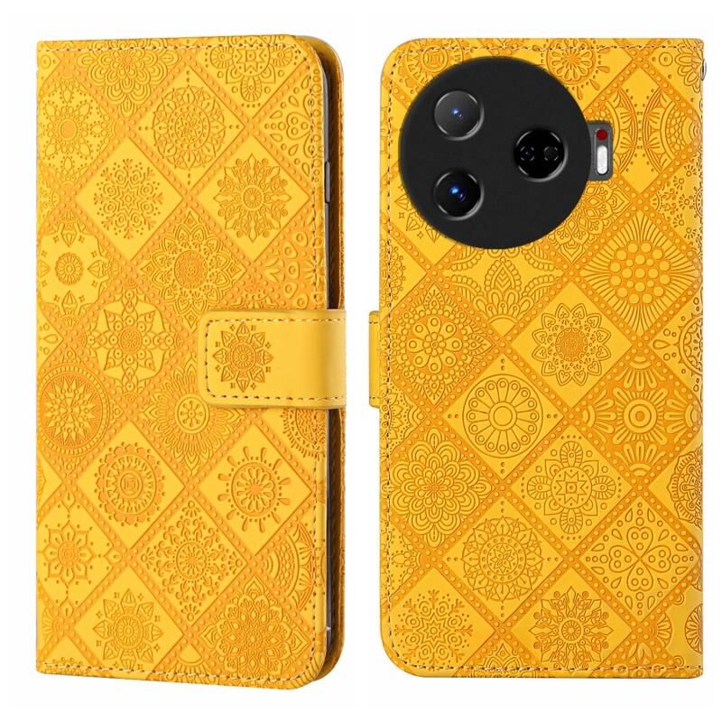Θήκη τηλεφώνου από δέρμα με ανάγλυφο σχέδιο εθνοτικού στυλ για Tecno Camon 30 Pro 5G (Καφέ)