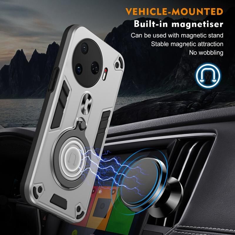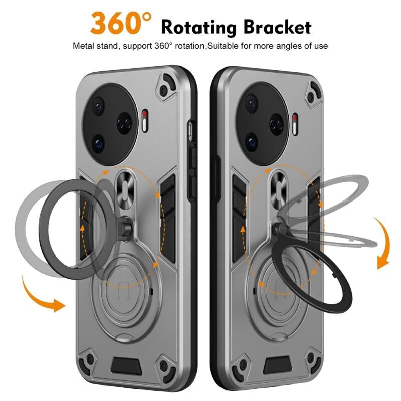 Για Tecno Camon 30 Pro 5G Μεταλλικό δαχτυλίδι 360 μοίρες περιστρεφόμενη θήκη τηλεφώνου PC Hybrid TPU (ασημί γκρι)