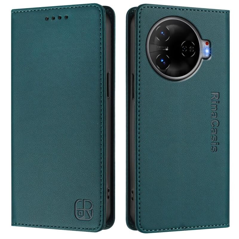 For Tecno Camon 30 Pro 5G RC01 Dual-Folded Magnetic Suction RFID Leather Phone Case(Dark Green)