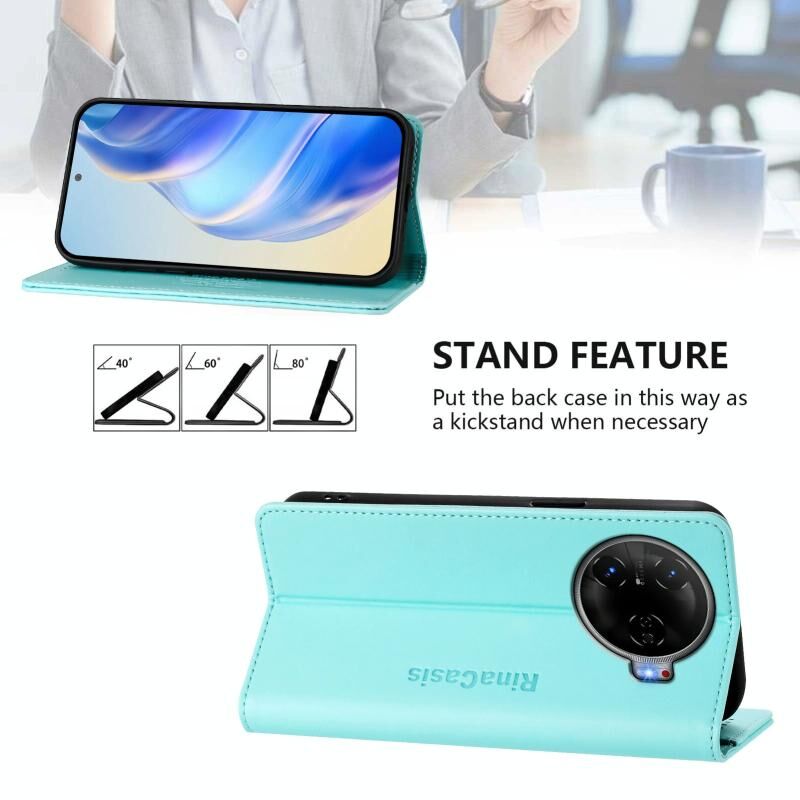 For Tecno Camon 30 Pro 5G RC01 Dual-Folded Magnetic Suction RFID Leather Phone Case(Mint Green)