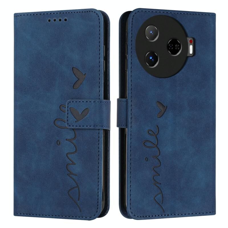 Για Tecno Camon 30 Pro 5G Skin Feel Heart ανάγλυφη δερμάτινη θήκη τηλεφώνου με μακρύ κορδόνι (μπλε)