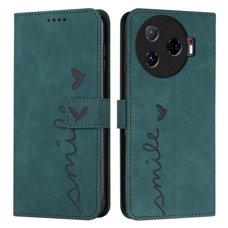 Για Tecno Camon 30 Pro 5G Skin Feel Heart ανάγλυφη δερμάτινη θήκη τηλεφώνου με μακρύ κορδόνι (πράσινο)