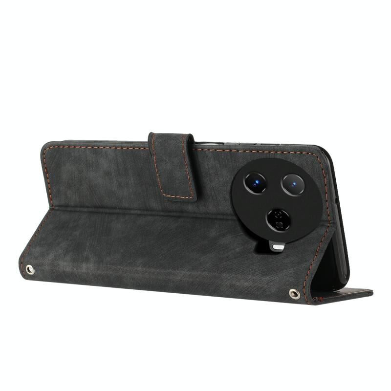 Για Tecno Camon 30 Pro 5G Skin Feel Stripe Pattern δερμάτινη θήκη τηλεφώνου με μακρύ κορδόνι (Μαύρο)