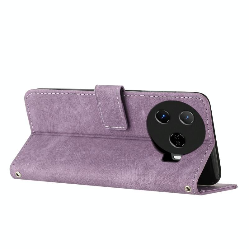 Για Tecno Camon 30 Pro 5G Skin Feel Stripe Pattern δερμάτινη θήκη τηλεφώνου με μακρύ κορδόνι (μωβ)