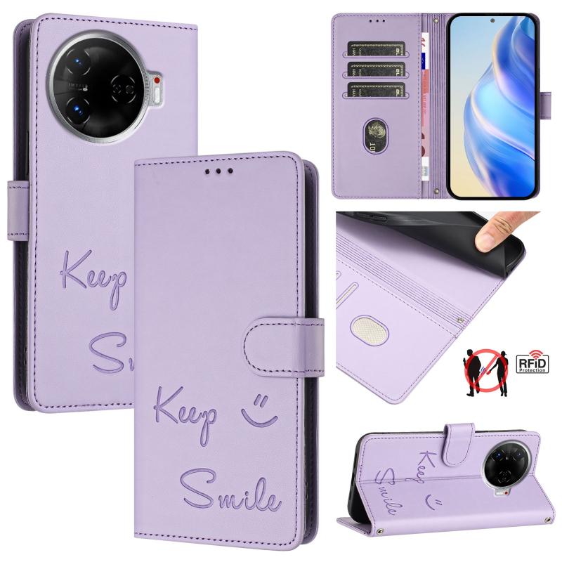 For Tecno Camon 30 Pro 5G Smile Embossing RFID Leather Phone Case(Light Purple)