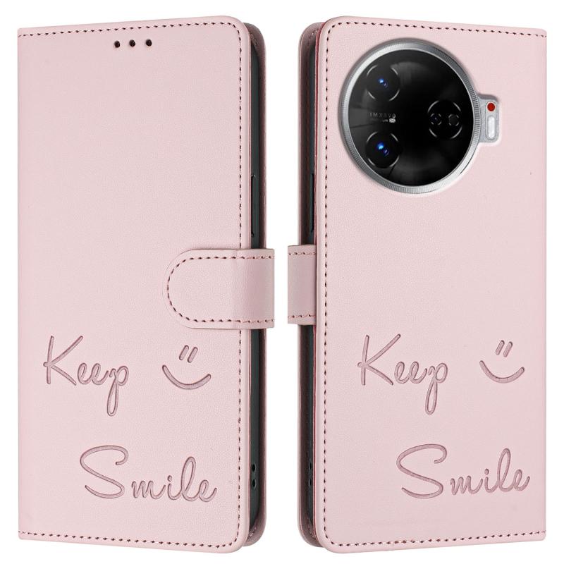 For Tecno Camon 30 Pro 5G Smile Embossing RFID Leather Phone Case(Pink)