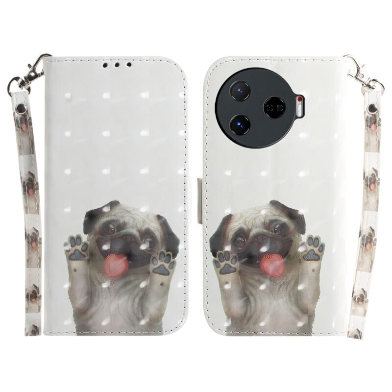 Θήκη τηλεφώνου δέρμα κατακόρυφης αναδίπλωσης με έγχρωμο 3D σχέδιο για Tecno Camon 30 Pro CL8 (Pug)