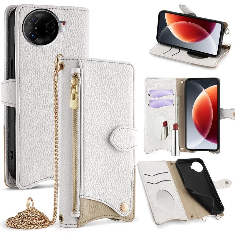 Θήκη τηλεφώνου Tecno Camon 30 Pro με αλυσίδα Crossbody, υφή ψαροουράς από δέρμα Litchi (Μαύρο)