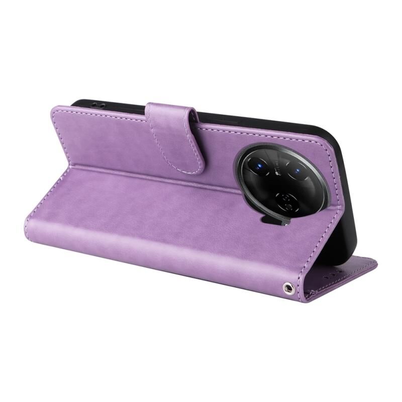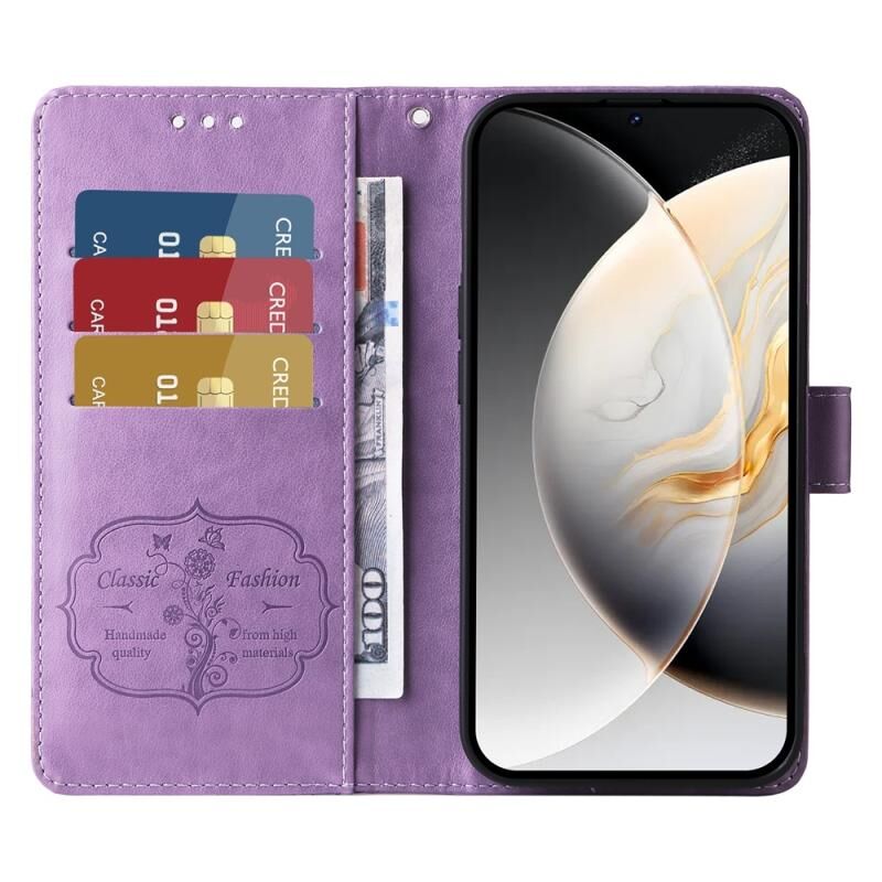 Θήκη τηλεφώνου από δέρμα με ανάγλυφα σχέδια πεταλούδας και λουλουδιών για Tecno Camon 30 Pro (Μωβ)