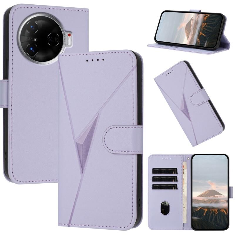 Θήκη τηλεφώνου από δέρμα με κούμπωμα αγκράφας σε τριγωνικό μοτίβο για Tecno Camon 30 Pro (Σκούρο Μωβ)