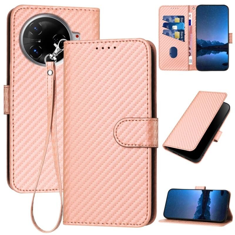 Για Tecno Camon 30 Pro YX0070 Carbon Fiber πόρπη δερμάτινη θήκη τηλεφώνου με κορδόνι (ροζ)