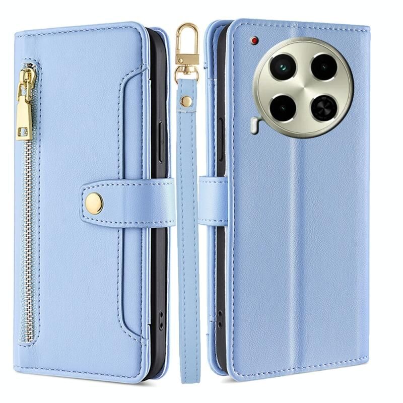Για Tecno Camon 30 Πρόβατο υφή Cross-body φερμουάρ πορτοφόλι δερμάτινη θήκη τηλεφώνου (μπλε)