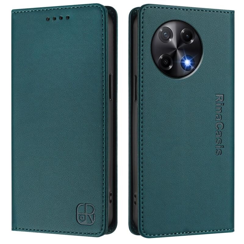 For Tecno Camon 30S / 30S Pro 5G RC01 Dual-Folded Magnetic Suction RFID Leather Phone Case(Dark Green)