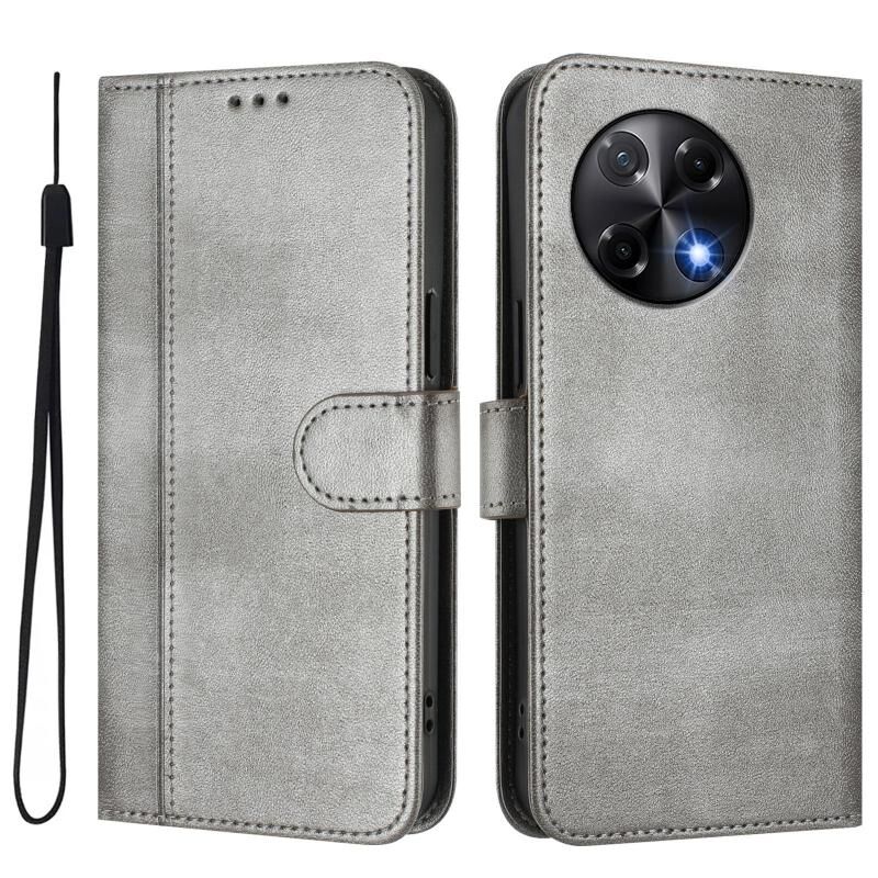 For Tecno Camon 30S / 30S Pro Line Splicing Buckle Retro Leather Phone Case(Grey)