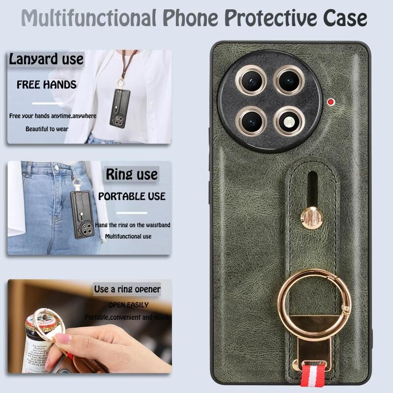Για Tecno Camon 30S / 30S Pro Wristband δερμάτινη πίσω θήκη τηλεφώνου (πράσινο)