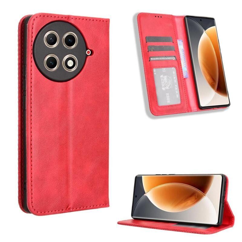 Για Tecno Camon 30S 4G / 30S Pro 4G Μαγνητική πόρπη ρετρό υφή δερμάτινη θήκη τηλεφώνου (κόκκινο)