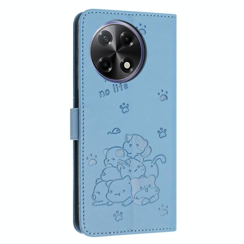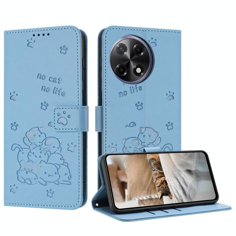 Θήκη δερμάτινη για Tecno Camon 30S με ανάγλυφο σχέδιο γατάκι και κορδόνι (Μωβ)